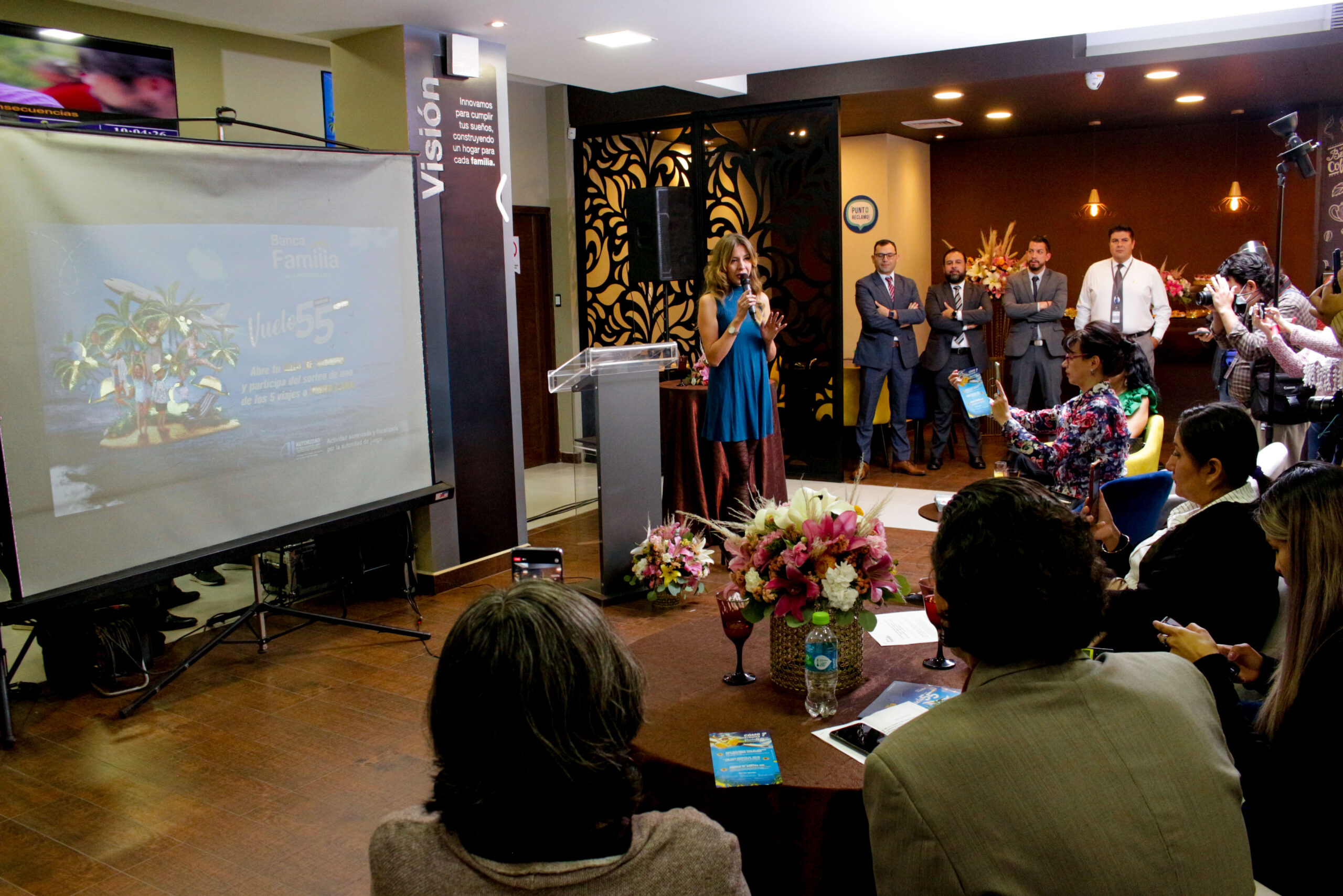 El lanzamiento de la espectacular campaña “Vuelo 55”, se realizó en el marco del festejo por el Día del Periodista Boliviano. Líderes de opinión y funcionarios de medios de comunicación asistieron a la agencia Norte de Cochabamba y a la agencia central de La Paz de la Entidad Financiera, donde disfrutaron de un brunch y muchas sorpresas.