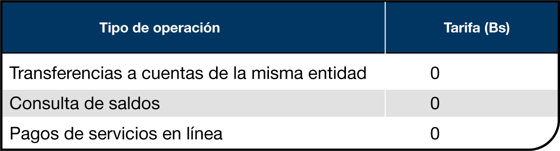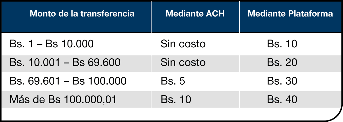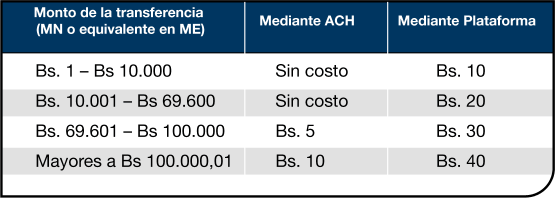 Las comisiones varían entre Bs 5 y Bs 40, según el monto transferido y el canal utilizado.